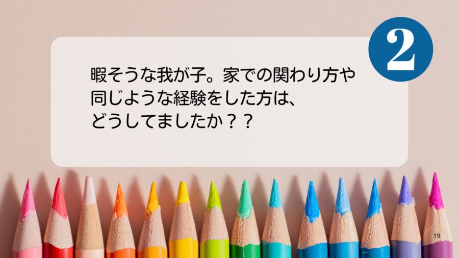 本人のエネルギーが貯まって「行きたい」と思う所なら外出するようになることもあります。それぞれのご家庭での体験談を交えて話してくれました。
