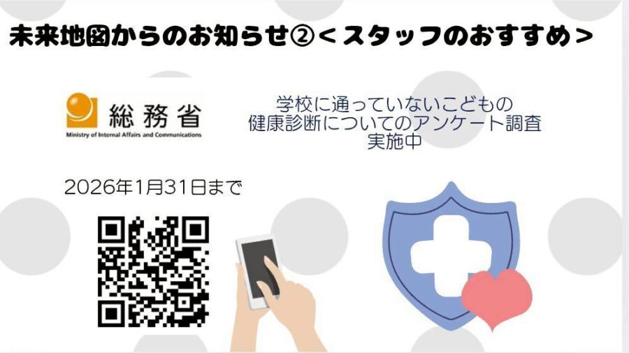 学校に通っていないこどもの健康診断についてのアンケートを実施中だそうです。