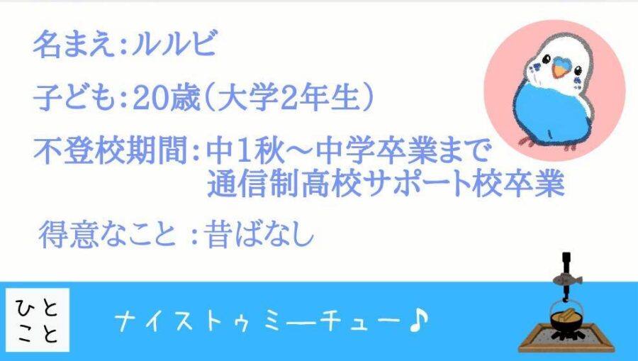 対応や過ごし方は個人差もあることなので、「こういう対応や過ごし方もあるんだな」と聞いていただけたら幸いです。