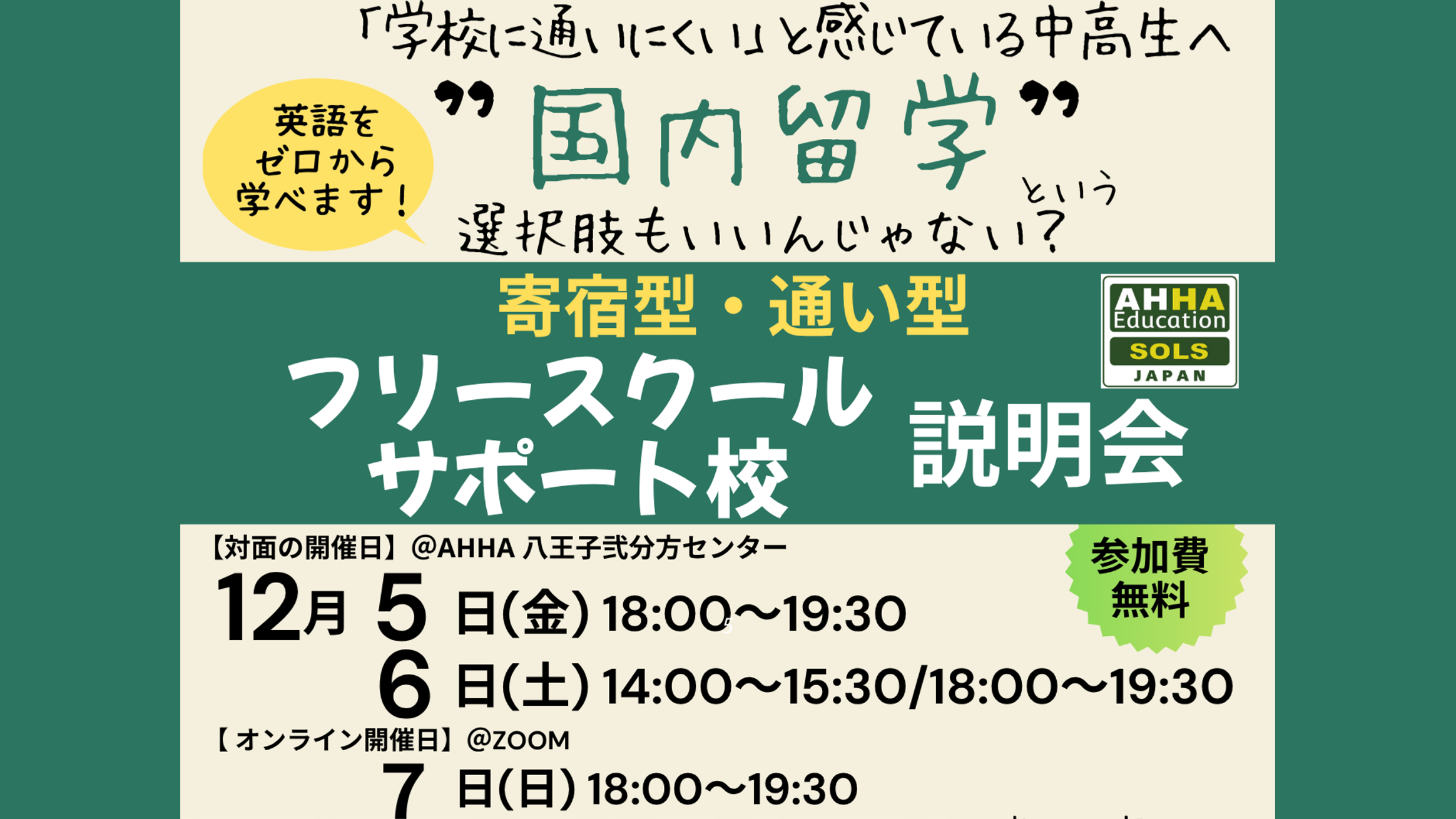 アハソールスでは通学プログラムだけでなく、寄宿型の国内留学プログラムも東京都八王子市で提供しています。