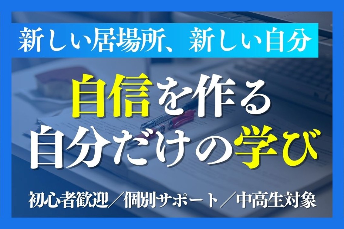 不登校の子どもが安心して取り組めるよう、静かで集中できるオフィスのような環境を整備。小人数制で講師との信頼関係を大切にし、各自のペースに合わせた個別カリキュラムを用意しています。