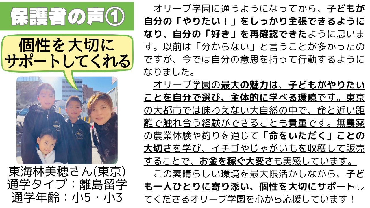 離島という環境で、子どもが本来持っている自分らしさを取り戻し、より広く「枝葉(可能性)」を伸ばす力を育てます。