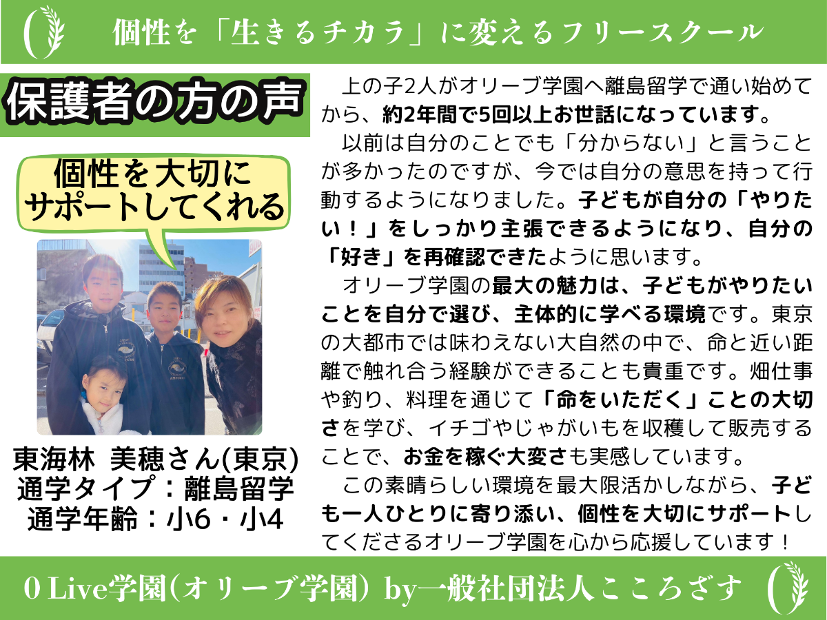 離島という環境で、子どもが本来持っている自分らしさを取り戻し、より広く「枝葉(可能性)」を伸ばす力を育てます。