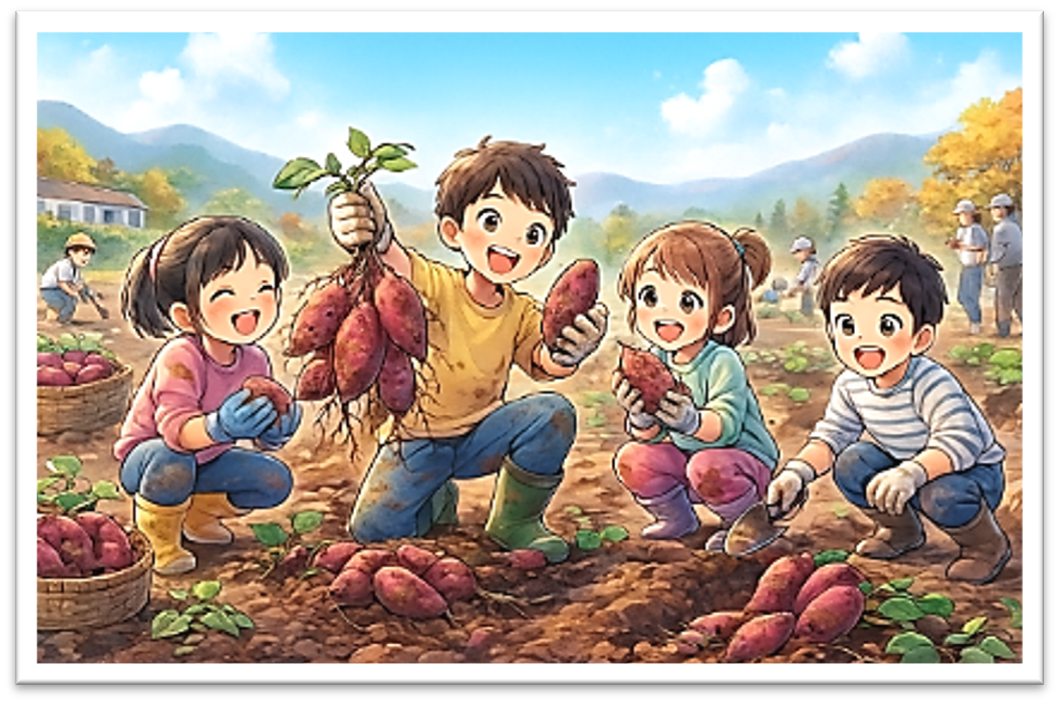 • 自然体験(公園や森の散策、いもほり収穫体験、魚釣り、動物との触れ合いなど)