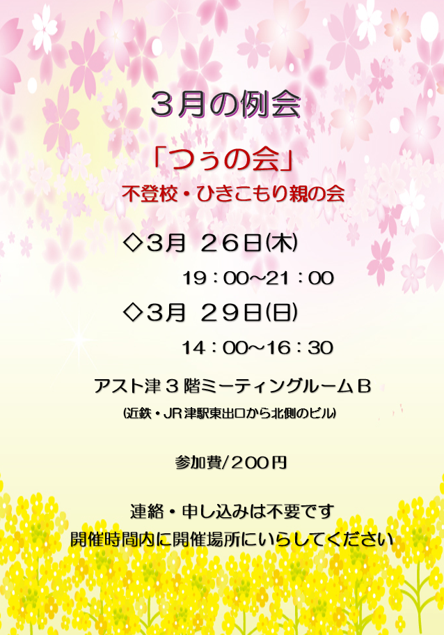 三重県津市にある、登校拒否・不登校・ひきこもりを考える親の会です。