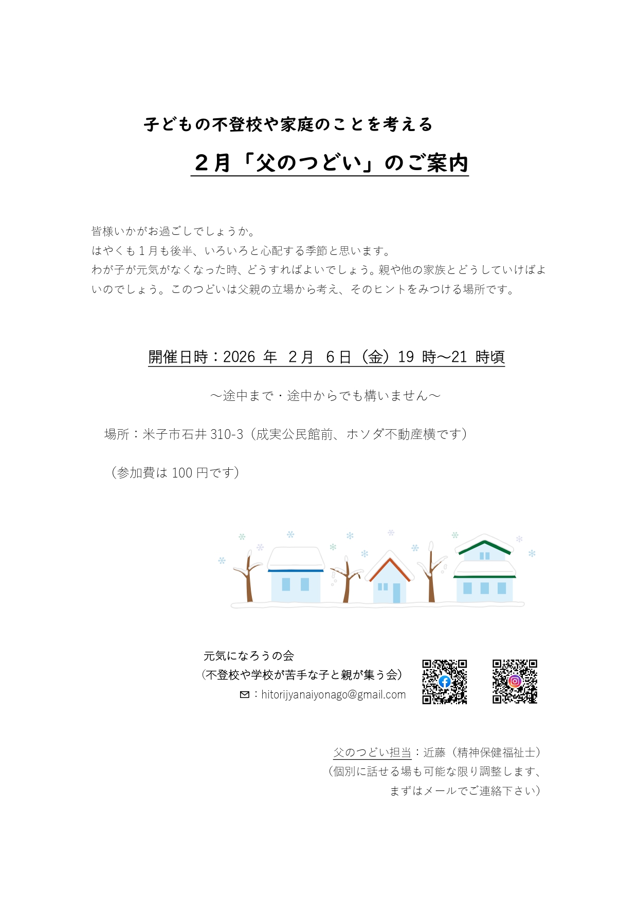 ③「父のつどい」(月一回概ね前半の金曜日)19:00~21:00