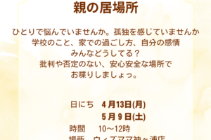 親の居場所 〜不登校の子をもつ親のお話し会・次回4月13日(月)・5月9日(土)〜