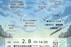 1,500円(焼菓子・お茶・ミニコンサート付き)お子さんが不登校、行き渋り、別室登校、 朝起きられないetc.…お悩みの保護者の方で 集まってお話ししませんか? プロの演奏家によるミニ・コンサート付きの会です。 不登校’sファミリー =お母さま、お父さま、おばあさま、おじいさま… どなたでもご参加いただけます。 ご自身はもちろん 皆さまの周りに対象の方がいらっしゃいましたら 🍀仲間がいること🍀 お知らせいただけました...